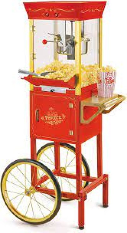 • Pop Corn MachineMake movie-night magic with this classic Pop Corn Machine. Easy to rent and simple to operate, it produces fluffy, hot popcorn the old-fashioned way—perfect for parties, fundraisers, school events, or backyard gatherings. The countertop-style unit heats kernels in a clear, glass-sided kettle so guests can watch each golden batch pop; a built-in stirring arm helps prevent burning and ensures even popping. It includes a warming deck to keep popcorn fresh and ready to serve, and a scoop and measuring cup so portioning is quick and tidy. Lightweight and portable, the machine sets up in minutes on any stable surface and needs only standard power to run. Serve up that irresistible aroma and crunchy, buttery goodness to brighten any event.