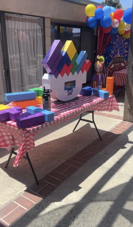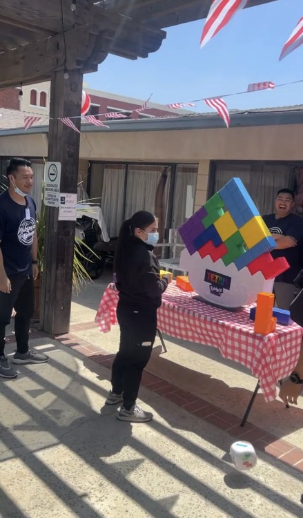 Setup is straightforward: arrange a playing area, hand teams their blocks, and let guests race to complete rows, build towers, or clear lines depending on your chosen challenge. The large pieces are easy for kids and adults to handle, and the visual, tactile nature of the game makes it instantly engaging for spectators as well as participants. Safe and family-friendly, this attraction adds bright color, playful competition, and a nostalgic twist to any gathering.